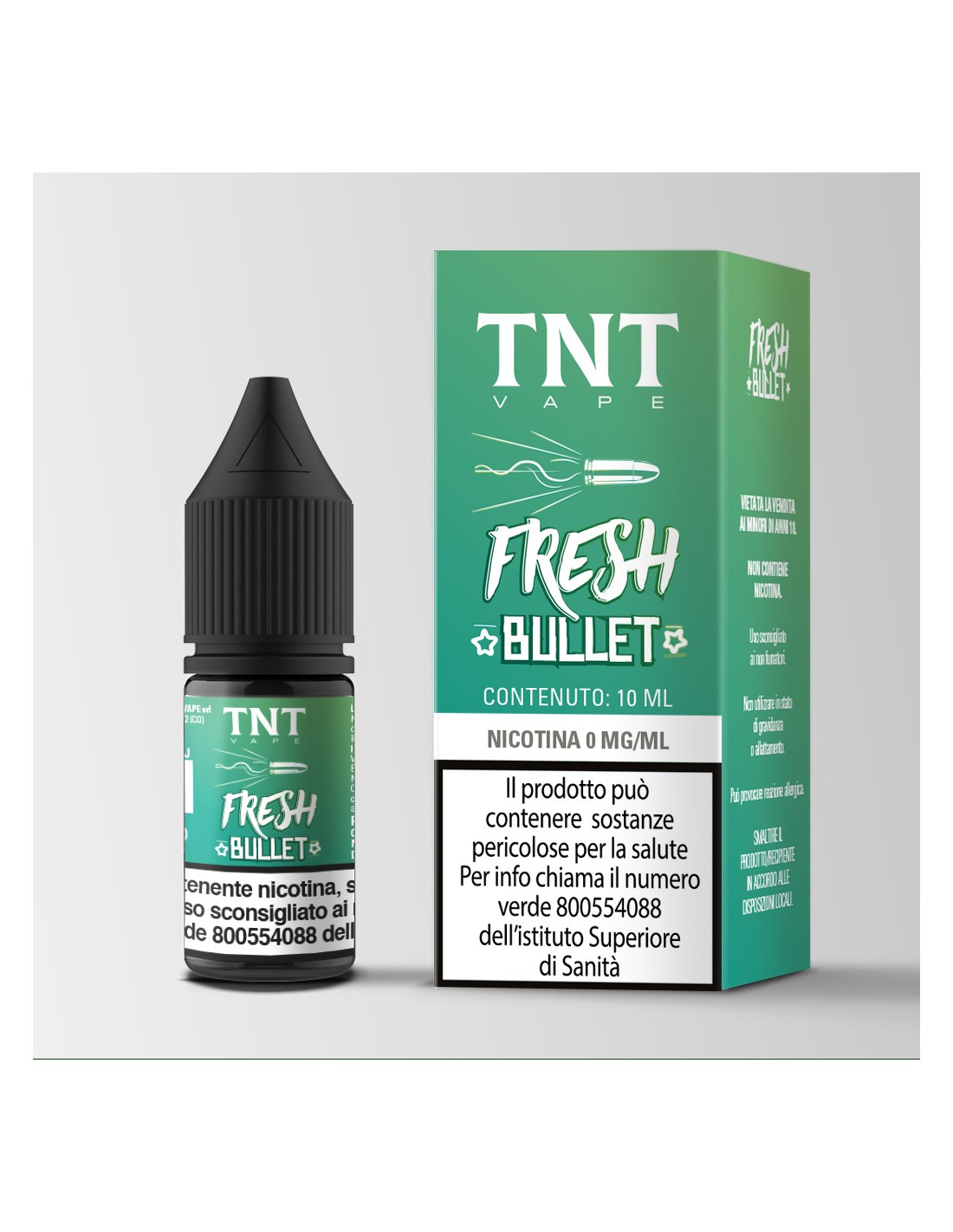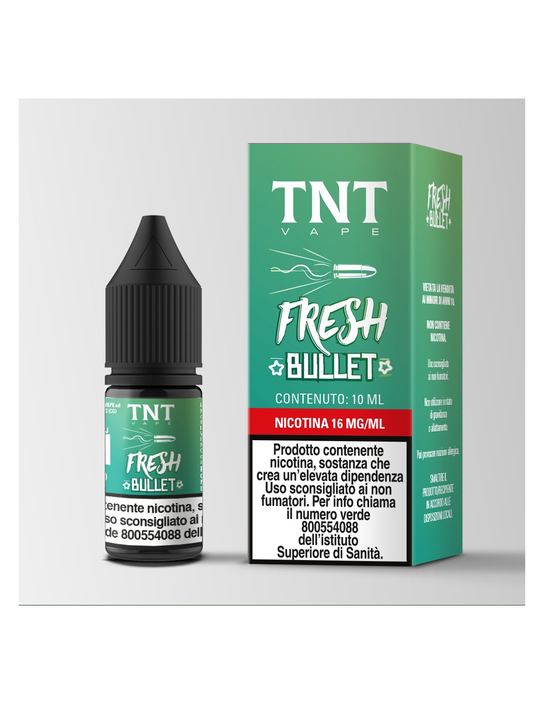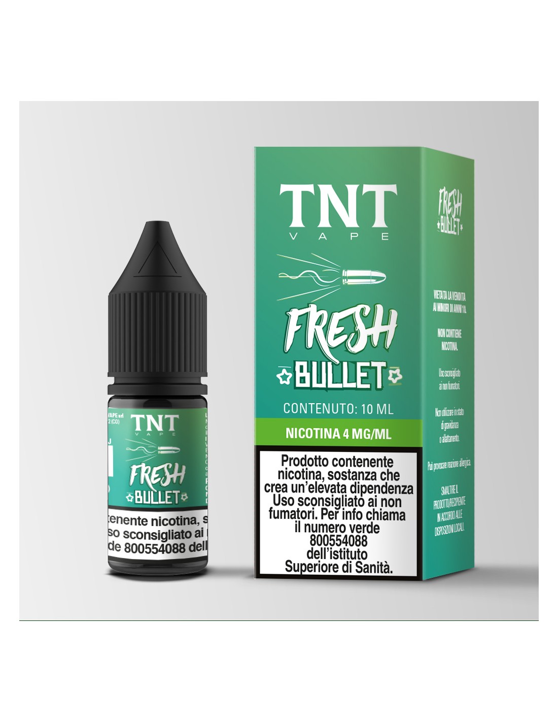 TNT VAPE Liquido Pronto Fresh Bullet 10ml con o senza nicotina. Fresh Bullet è un mix di menta piperita, lime e al mirtillo.